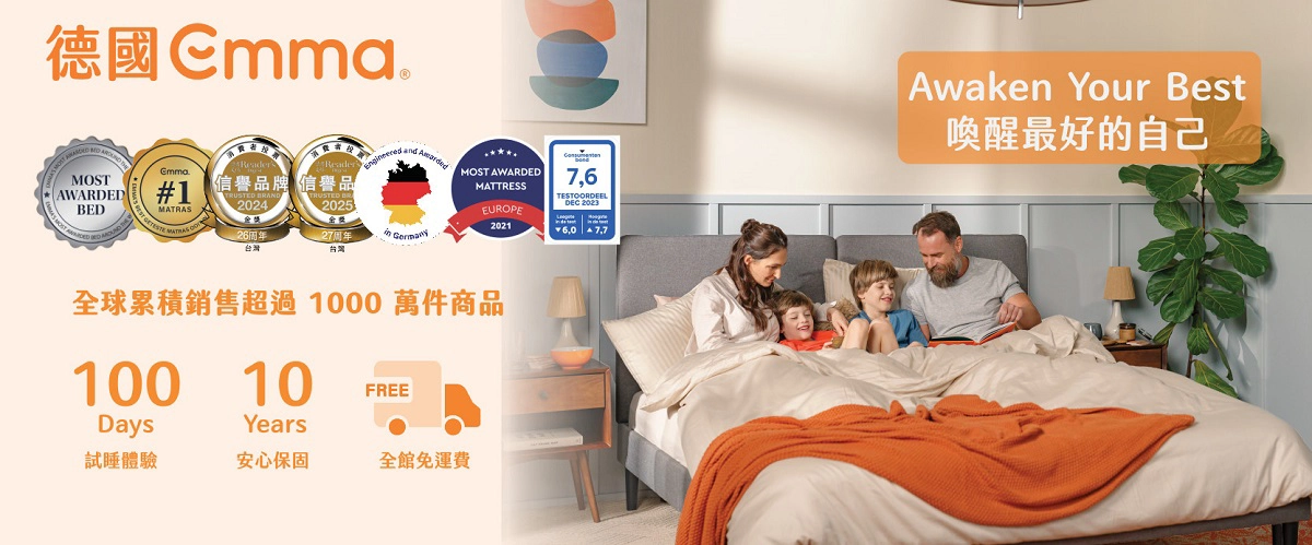 除了蟬聯信譽品牌金獎,Emma在歐洲多國是獨立筒床墊銷售冠軍,也正積極申請SGS認證。這些第三方認證不只凸顯Emma的優良品質,也有助提升消費者對品牌的信賴。